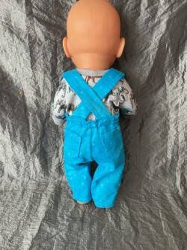 De schouderbanden zijn kruislings op de rug, blijven goed op de plaats zitten en sluiten aan de voorkant met drukkers. Achter in de taille is elastiek, waardoor het mooi aansluit op het lijfje van de pop.