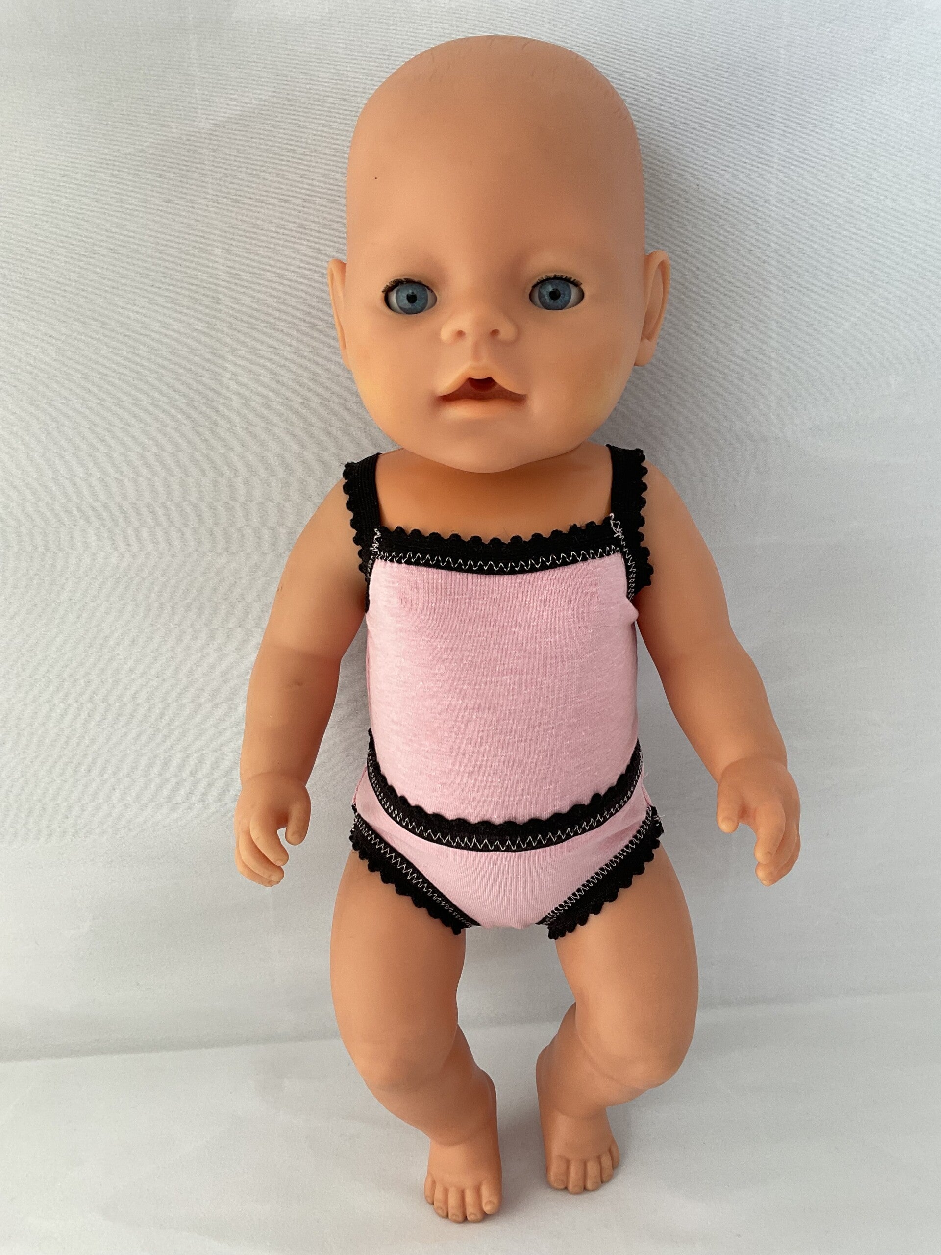 Het hemdje heeft bandjes van zwart lingerie elastiek en is gemaakt van tricot.