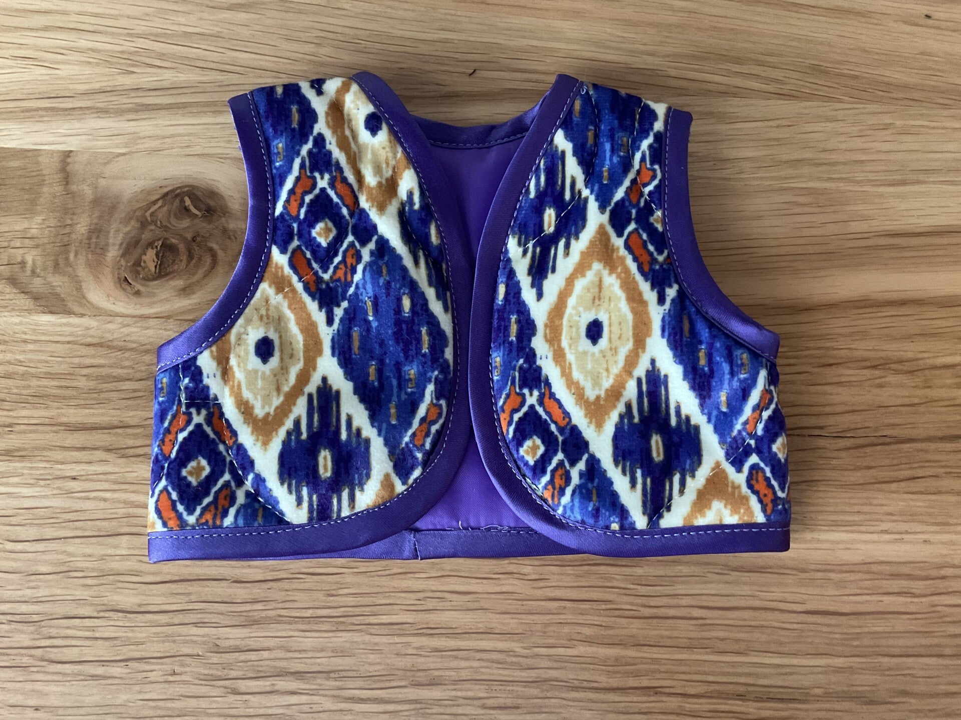Het giletje is gemaakt van gewatteerde stof. Leuk om over een trui aan te doen, maar ook een jurkje eronder kan prima.