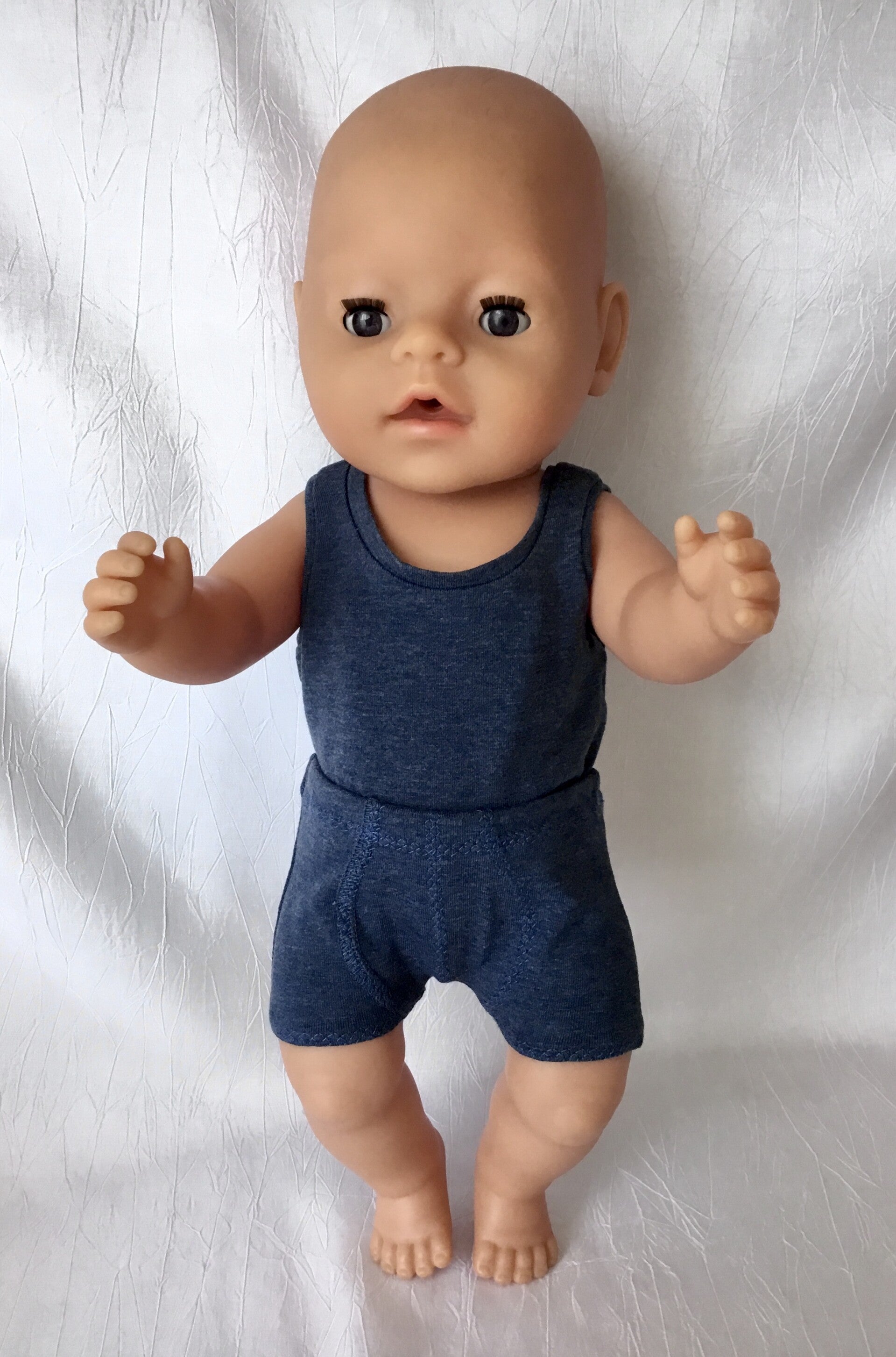Dit setje voor hem bestaat uit hemd en een boxershort. Het voorpand heeft niet een echte gulp, maar is dicht, zodat het mooi aansluit op het lijfje van de pop.
